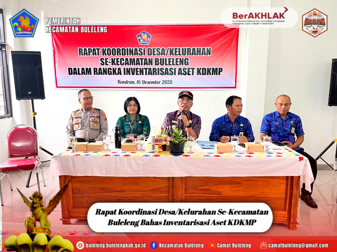 Kehadiran Camat Buleleng beserta jajaran disambut oleh Lurah Kendran Made Sumardika. Rapat koordinasi ini difokuskan pada pembahasan inventarisasi aset dalam rangka mendukung pelaksanaan Koperasi Desa/Kelurahan Merah Putih (KDKMP).