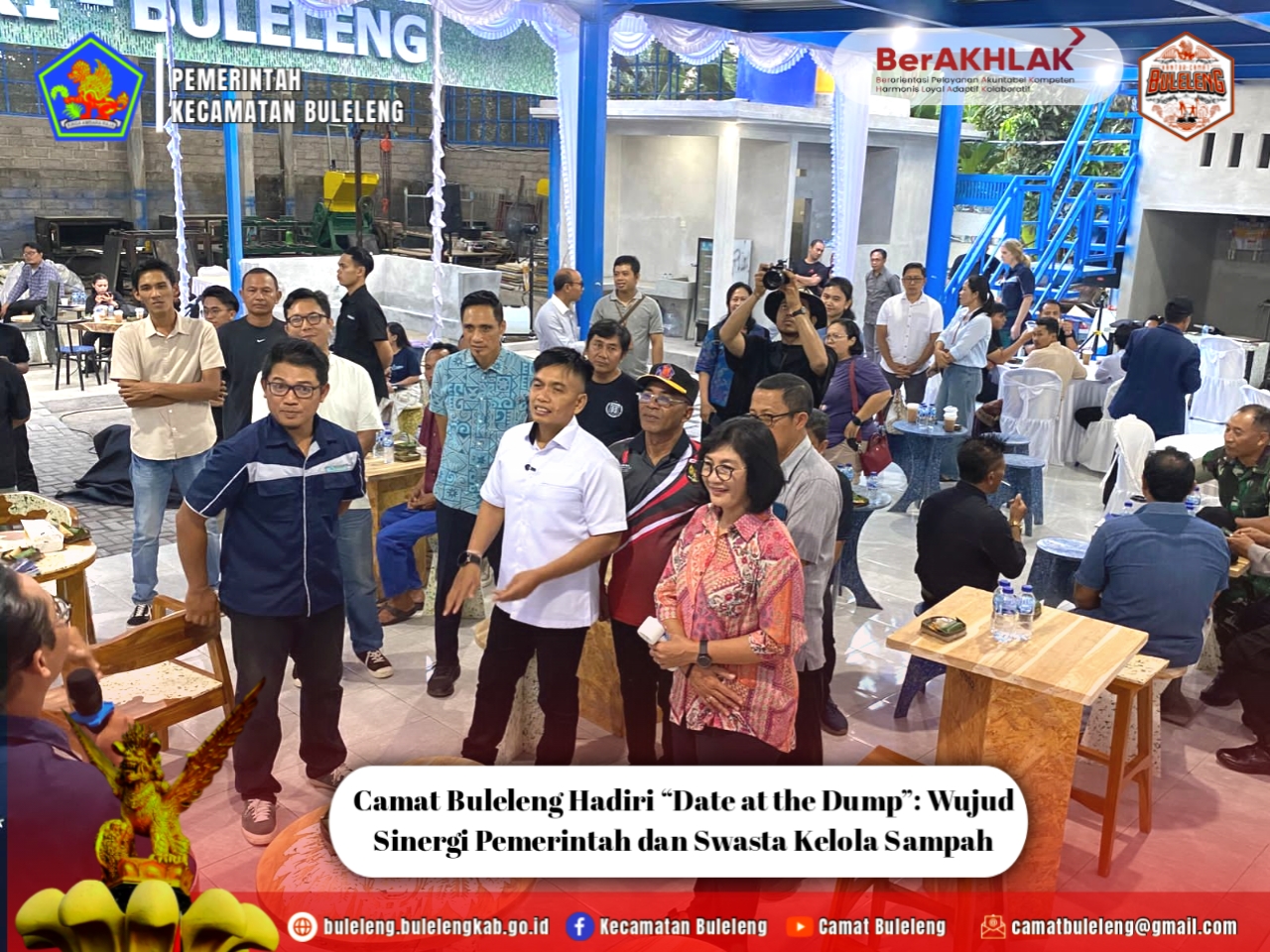 Camat Buleleng, Putu Gopi Suparnaca, S.Sos, menghadiri kegiatan inovatif bertajuk "Date at the Dump" yang diselenggarakan oleh PT. RUMAH PLASTIK MANDIRI pada Jumat (7/11) sore. Acara yang berlangsung di lokasi pabrik daur ulang PT. Rumah Plastik di Desa Petandakan, Buleleng, ini bertujuan membangun jejaring kerja dan menjajaki peluang kolaborasi untuk mengatasi permasalahan sampah anorganik, khususnya plastik.