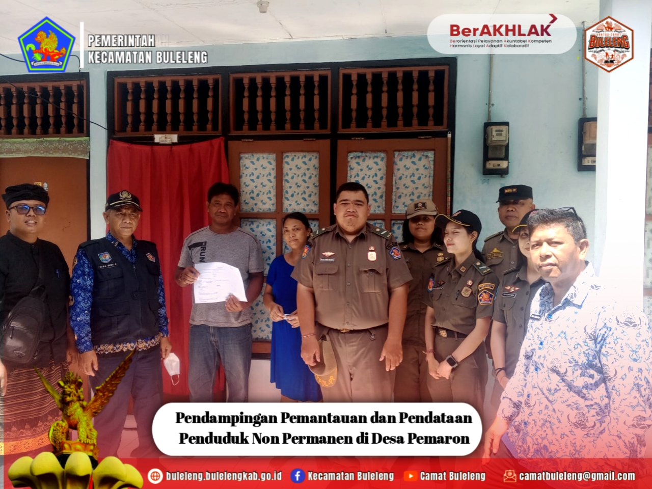 Dari hasil pendataan hari tersebut, tercatat Penduduk Non Permanen Baru di Desa Pemaron sebanyak 9 orang, terdiri dari 4 laki-laki dan 5 perempuan. Data ini selanjutnya akan menjadi dasar pembaruan administrasi kependudukan serta pemantauan mobilitas penduduk di wilayah Kecamatan Buleleng.