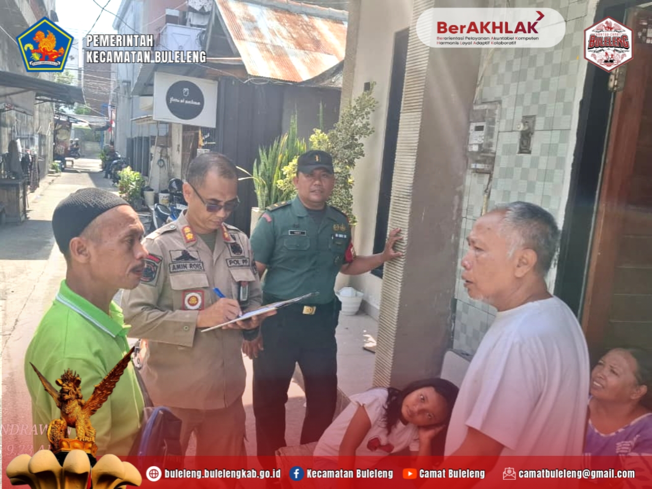 Kegiatan yang dilaksanakan pada Kamis, 23 Oktober 2025 ini turut dihadiri oleh Kepala Seksi Pemerintahan Kantor Camat Buleleng Gede Susena, S.E, didampingi staf, serta Kasi Trantib dan Sat Pol PP Kecamatan Buleleng Amin Rois, S.Hut yang juga bertugas sebagai Plt. Lurah Kampung Bugis. Pendampingan dilakukan bersama Tim dari Dinas Kependudukan dan Catatan Sipil Kabupaten Buleleng, Satpol PP Kabupaten Buleleng, Aparatur Kelurahan Kampung Bugis, para Kepala Lingkungan, serta unsur Bhabinsa dan Bhabinkamtibmas setempat.