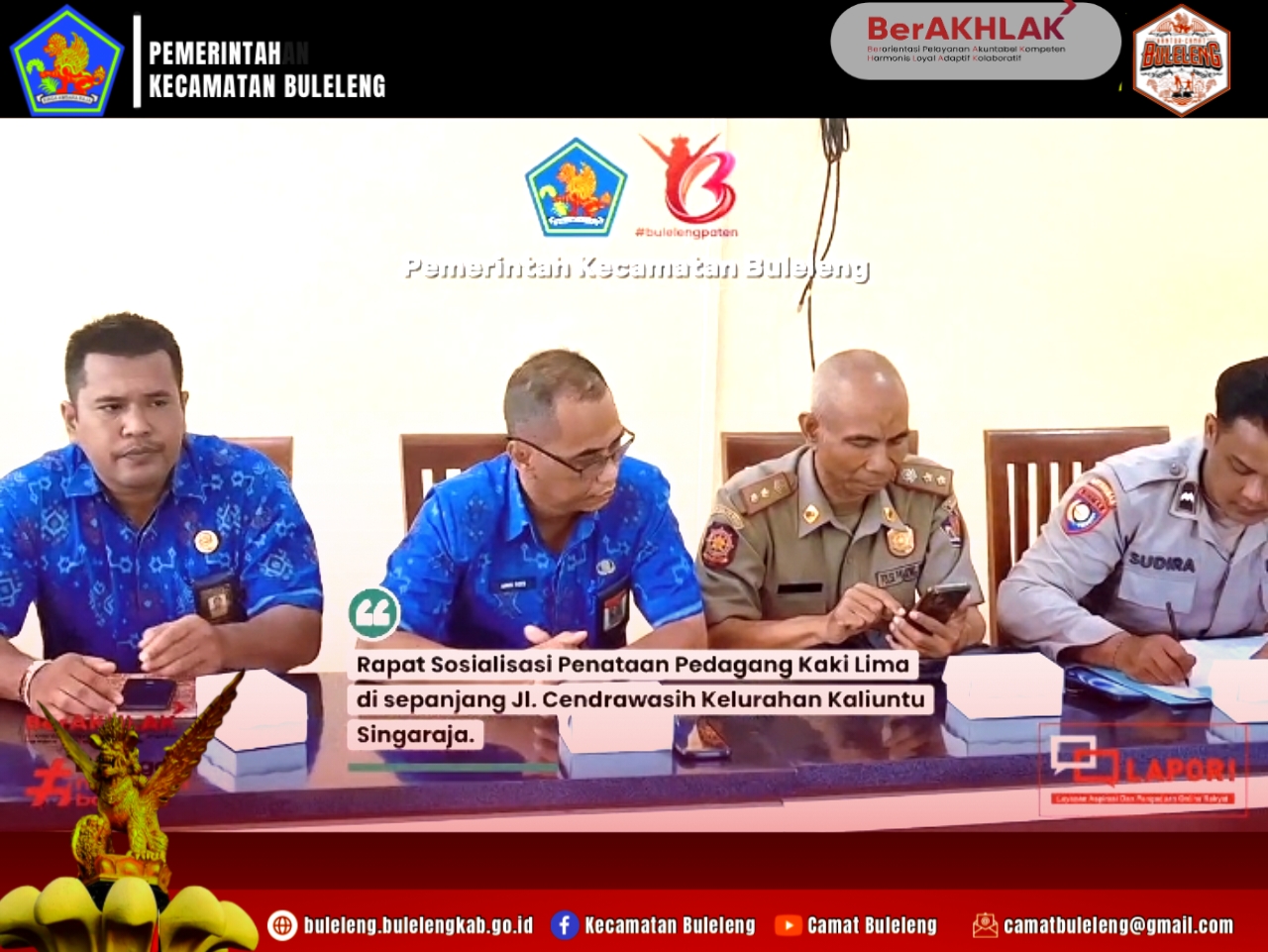 Selasa, 25 November 2025 – Kasi Trantib dan Sat Pol PP Kecamatan Buleleng, Amin Rois, S.Hut, menghadiri rapat koordinasi terkait relokasi pedagang kaki lima (PKL), serta penataan taman dan area parkir di Jalan Cendrawasih Singaraja. Rapat berlangsung di Ruang Rapat Kantor Lurah Kaliuntu dan dihadiri oleh berbagai instansi terkait.