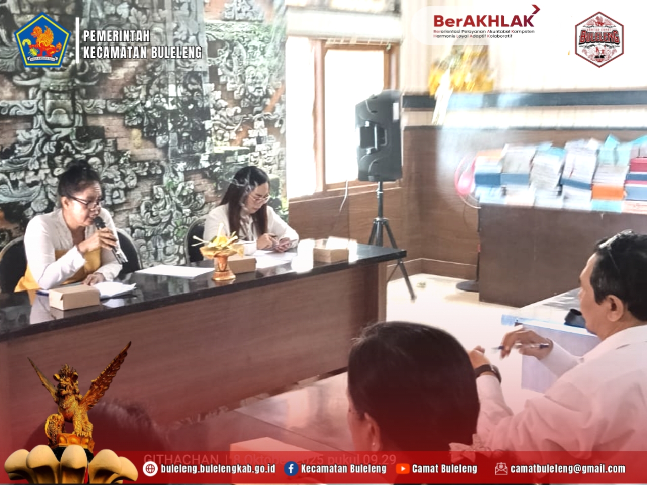 Buleleng, Rabu (8/10/2025) – Kepala Seksi Sosial dan Budaya Kecamatan Buleleng Ni Ketut Suryaniti, S.E., M.Si memimpin rapat pembahasan pembentukan Forum Komunikasi Karang Wredha Kecamatan Buleleng masa bakti 2025–2030, bertempat di Ruang Rapat Kantor Camat Buleleng.