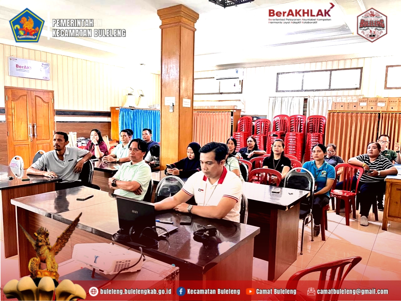 Buleleng, — Kepala Subbag Umum dan Keuangan Kecamatan Buleleng Putu Tegeh Koriadi, S.E., M.Si bersama staf mengikuti sosialisasi virtual tentang Pengendalian dan Pelaporan Gratifikasi yang diselenggarakan oleh Inspektorat Daerah Kabupaten Buleleng, Jumat, 10 Oktober 2025, bertempat di Aula Ruang Rapat Kantor Camat Buleleng.