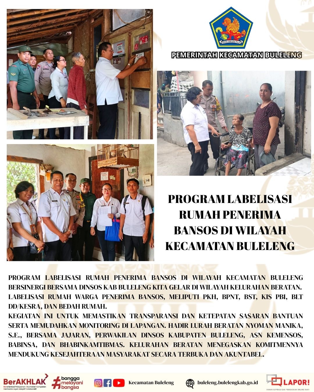 Program labelisasi rumah penerima bansos di wilayah Kecamatan Buleleng dilaksanakan dan bersinergi bersama Dinas Sosial Kabupaten Buleleng digelar di wilayah Kelurahan Beratan.