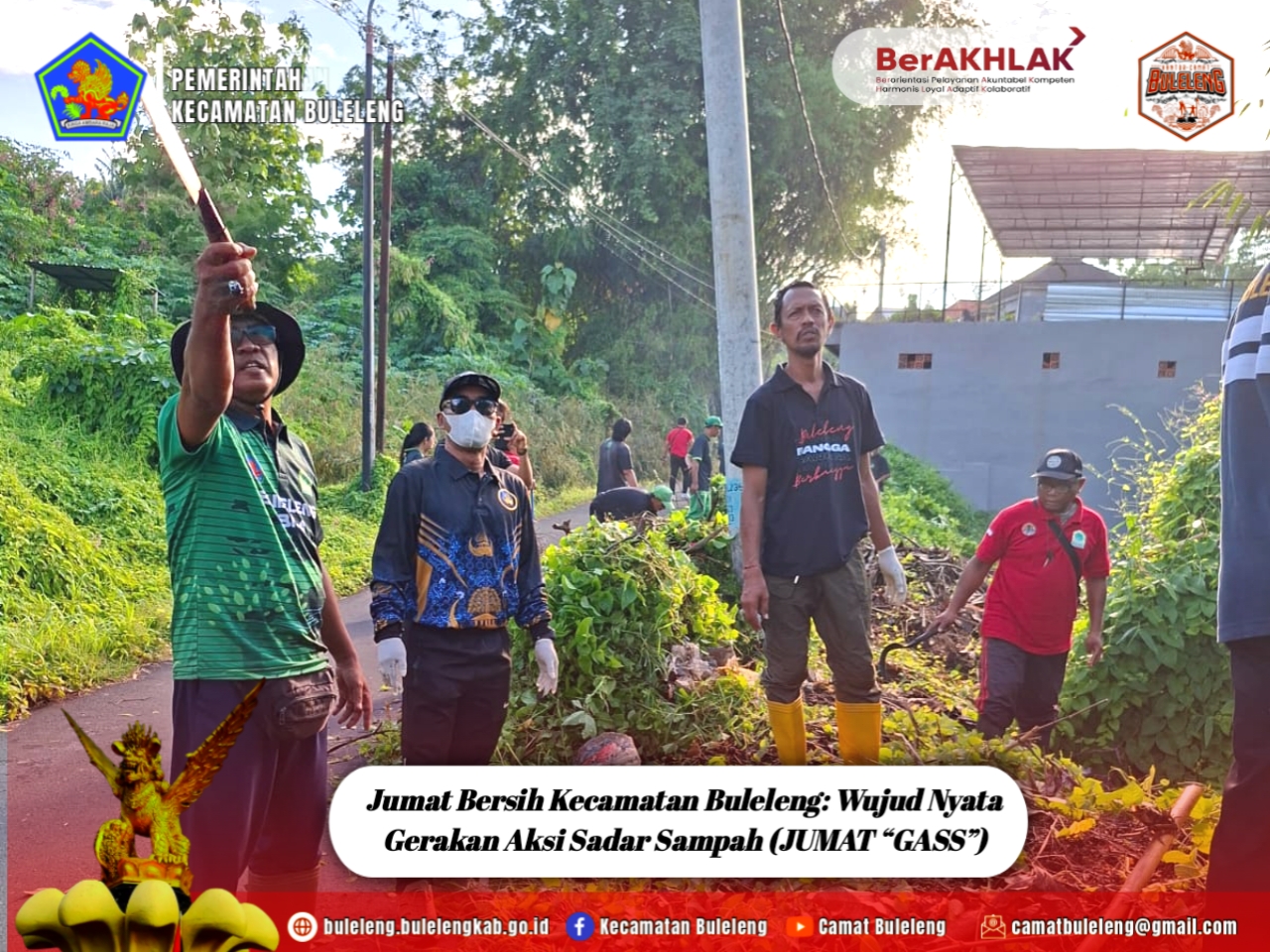 Buleleng, 5 Desember 2025 — Pemerintah Kecamatan Buleleng kembali melaksanakan kegiatan rutin Jumat Bersih sebagai implementasi program prioritas JUMAT “GASS” (Gerakan Aksi Sadar Sampah). Kegiatan gotong royong kali ini terfokus di Jalan Lempuyang, tepatnya di kawasan sungai sekitar jembatan menuju Rumah Sakit Bali Med Singaraja, yang menjadi salah satu titik penting kebersihan lingkungan wilayah kota.