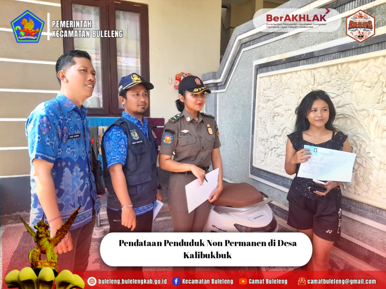 Kegiatan yang berlangsung hari ini turut dihadiri oleh anggota Satpol PP Kecamatan Buleleng, serta didampingi oleh tim dari Dinas Kependudukan dan Catatan Sipil (Disdukcapil) Kabupaten Buleleng dan Satpol PP Kabupaten Buleleng. Pelaksanaan di lapangan dikoordinir oleh perangkat Desa Kalibukbuk, yakni Kasi Pemerintahan dan Kepala Dusun Celukbuluh, bersama Linmas Desa Kalibukbuk.