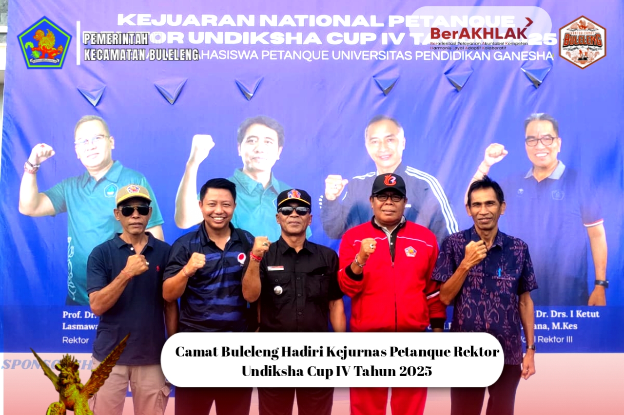 Buleleng, Sabtu, 1 November 2025 — Bertempat di Kampus Universitas Pendidikan Ganesha (Undiksha) Jinengdalem, Camat Buleleng Putu Gopi Suparnaca, S.Sos menghadiri pembukaan Kejuaraan Nasional (Kejurnas) Petanque Rektor Undiksha Cup IV Tahun 2025. Kehadiran beliau turut didampingi oleh Ketua KONI Kecamatan Buleleng, Perbekel Jinengdalem, serta Lurah Penarukan.