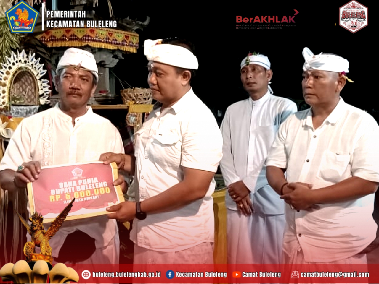 Usai melaksanakan persembahyangan, Camat Buleleng menyerahkan Dana Punia sebesar Rp 5 juta rupiah dari Bupati Buleleng kepada Kelian Pura Melanting Pasar Banyuasri sebagai bentuk dukungan dan perhatian pemerintah daerah terhadap kelestarian adat, tradisi, serta kehidupan spiritual masyarakat.