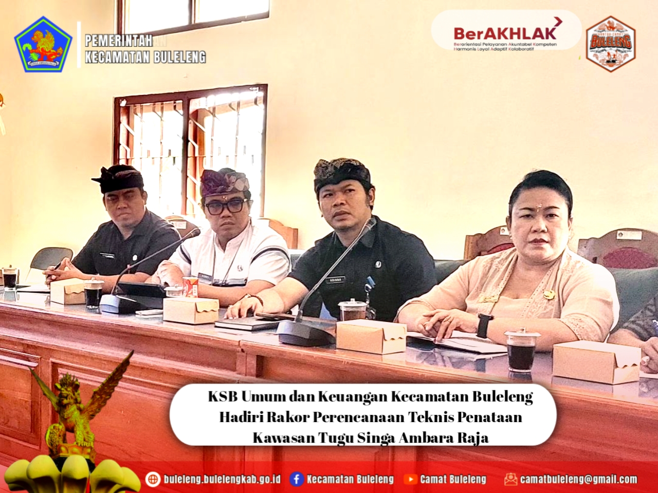 Buleleng, Kamis 30 Oktober 2025 – Kasubag Umum dan Keuangan Kecamatan Buleleng, Putu Tegeh Koriadi, S.E., M.Si, mewakili Camat Buleleng menghadiri Rapat Koordinasi Perencanaan Teknis Penataan Kawasan Tugu Singa Ambara Raja yang diselenggarakan oleh Dinas Pekerjaan Umum dan Tata Ruang (PUTR) Kabupaten Buleleng.