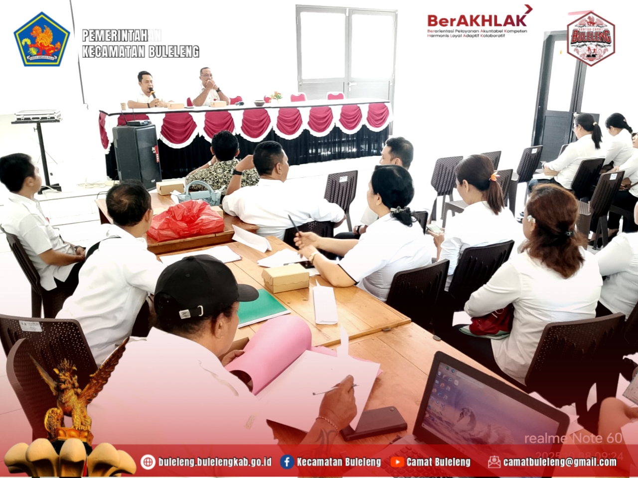 Kalibukbuk, Rabu (08/10/2025) – Tim Pembinaan Lomba Desa Tahun 2026 Kecamatan Buleleng melaksanakan kegiatan pembinaan tahap pertama di Desa Kalibukbuk. Kegiatan yang berlangsung di Ruang Rapat Kantor Desa Kalibukbuk ini dipimpin langsung oleh Kepala Seksi Pembangunan Kecamatan Buleleng, Anak Agung Ngurah Wiratma, S.H.