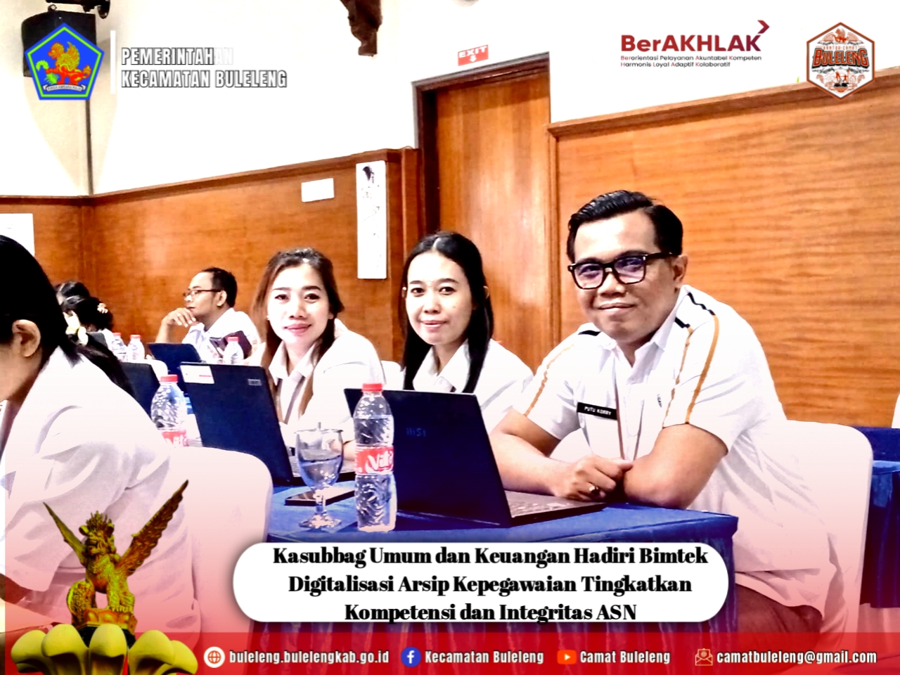 BULELENG — Dalam upaya penguatan tata kelola kepegawaian berbasis digital terus digencarkan Pemerintah Kabupaten Buleleng. Pada Rabu, 26 November 2025, Kasubag Umum dan Keuangan Kecamatan Buleleng Putu Tegeh Koriadi, S.E., M.Si bersama Staf Kepegawaian turut hadir berpartisipasi dalam Bimbingan Teknis Digitalisasi Arsip Kepegawaian yang berlangsung di Batch 2, Hotel Aneka Lovina.