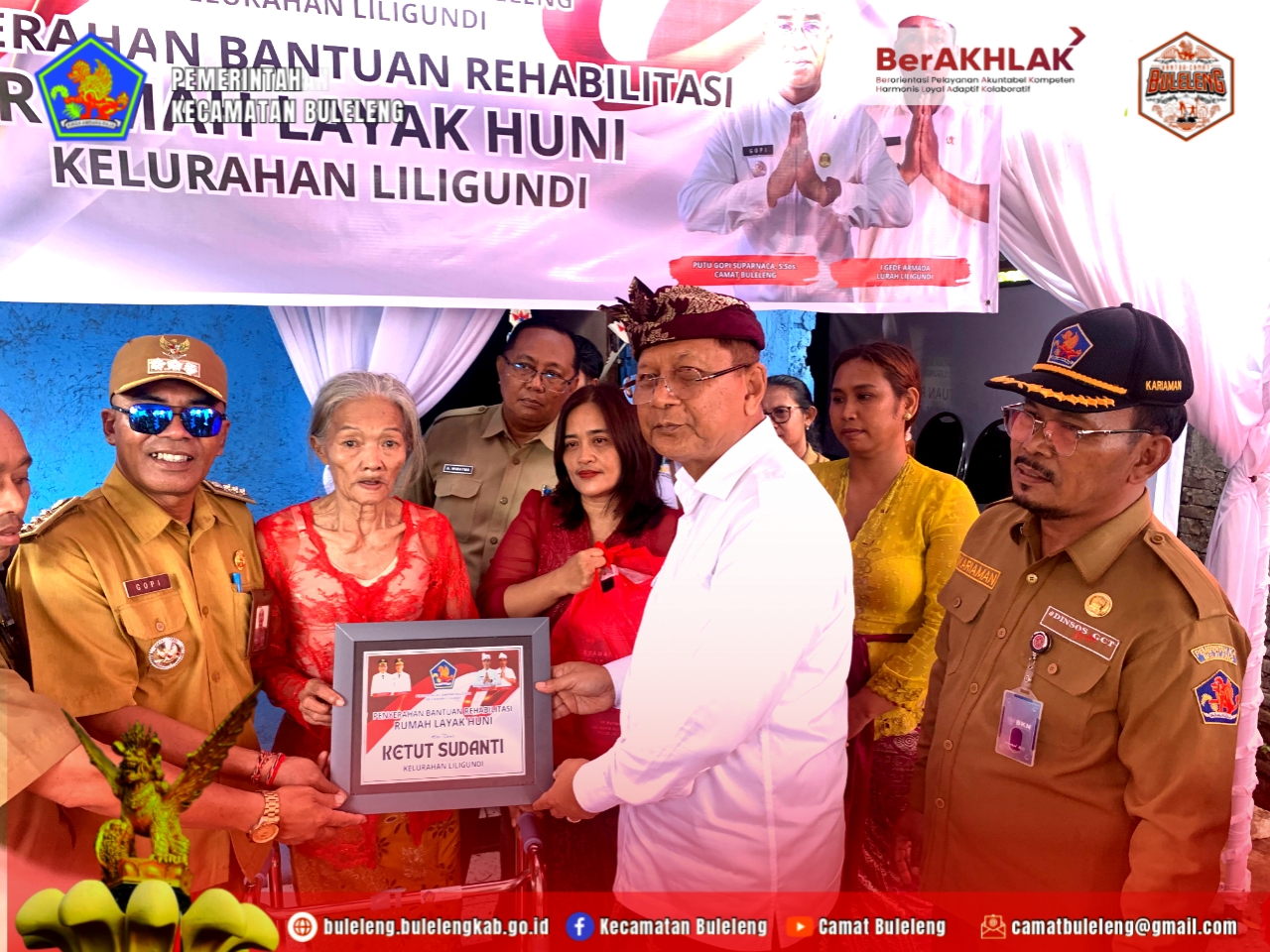 Dalam kesempatan tersebut, Bupati Buleleng secara langsung menyerahkan Rumah Layak Huni kepada penerima manfaat atas nama Ibu Luh Sudanti dimana moment ini bertepatan pada hari ibu. Bantuan ini merupakan wujud nyata perhatian dan komitmen Pemerintah Kabupaten Buleleng dalam meningkatkan kesejahteraan masyarakat, khususnya bagi warga kurang mampu, serta mendukung penyediaan hunian yang aman, sehat, dan layak huni.