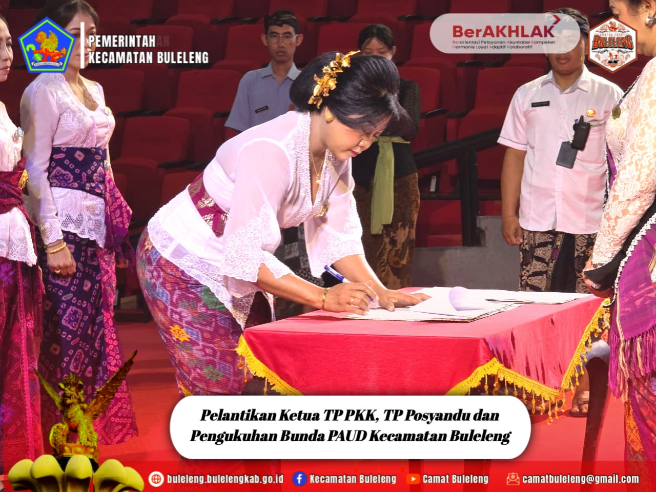 Dalam kesempatan tersebut, Ny. Wardhany Sutjidra melantik para Ketua TP PKK, TP Posyandu, serta Bunda PAUD dari lima kecamatan di Kabupaten Buleleng. Salah satu yang turut dilantik adalah Ny. Sri Sundariani Sudiarta sebagai Ketua TP PKK, Ketua TP Posyandu, sekaligus Bunda PAUD Kecamatan Buleleng.