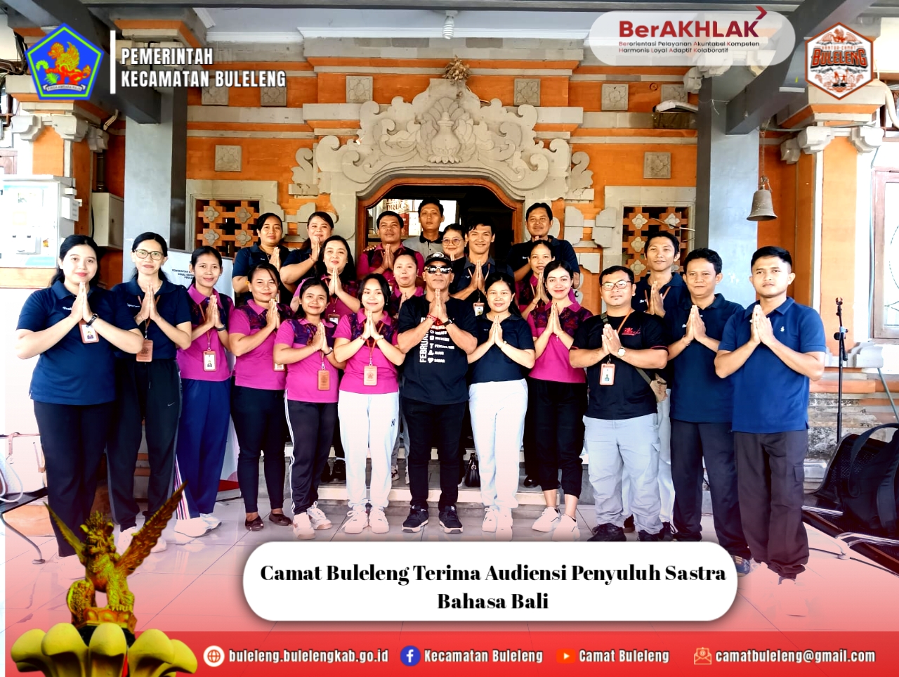 Dalam audiensi yang berlangsung di Kantor Camat Buleleng tersebut, sebanyak 26 orang Penyuluh Bahasa Bali hadir mewakili desa dan kelurahan di wilayah Kecamatan Buleleng. Mereka merupakan tenaga yang bertugas membantu melestarikan dan mempromosikan bahasa Bali di tengah masyarakat, baik melalui kegiatan pemerintahan desa, pendidikan, maupun kegiatan sosial budaya.