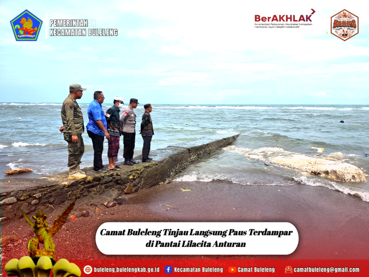 Anturan, Selasa (13/1/2026) — menindaklanjuti laporan warga terkait adanya paus terdampar di Pantai Lilacita, Desa Anturan, Camat Buleleng Putu Gopi Suparnaca, S.Sos didampingi Kasi Pembangunan Kecamatan Buleleng Anak Agung Ngurah Wiratma, S.H meninjau langsung lokasi kejadian.