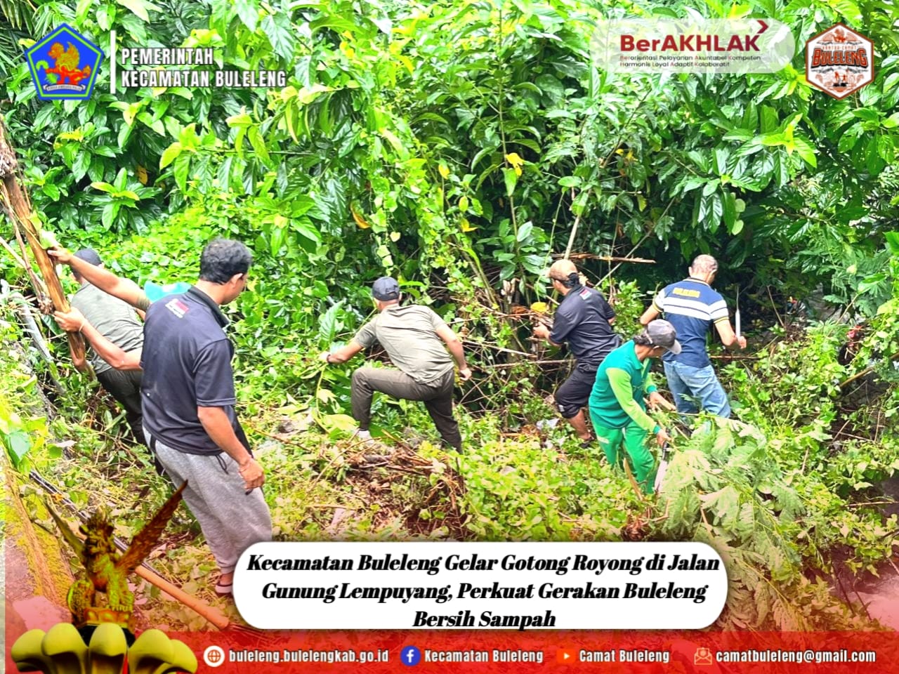 Gotong royong tersebut dikoordinir oleh Kasi Pemerintahan Kecamatan Buleleng, Gede Susena, S.E., bersama 14 staf kecamatan. Aksi bersih-bersih difokuskan pada area sekitar jembatan menuju RS Bali Med, sebuah titik yang sering mengalami penumpukan sampah dan berpotensi memicu banjir.
