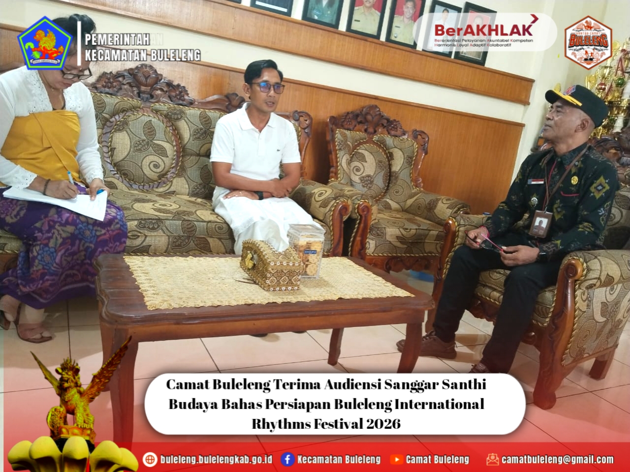 Audiensi ini membahas rencana pelaksanaan Buleleng International Rhythms Festival (BIRF) yang akan digelar pada 10–15 Maret 2026. Festival internasional tersebut akan melibatkan 170 peserta dari 7 negara, dan menjadi penyelenggaraan yang ketiga kalinya di tahun 2026.
