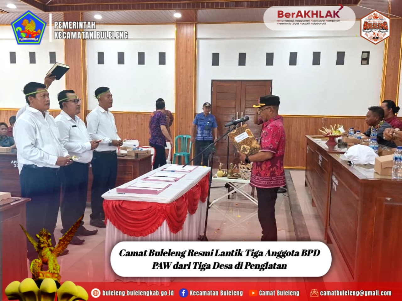 Penglatan, Selasa 9 Desember 2025 — Bertempat di Balai Kemasyarakatan Desa Penglatan, Camat Buleleng Putu Gopi Suparnaca, S.Sos mewakili Bupati Buleleng resmi melantik Anggota Badan Permusyawaratan Desa (BPD) Pengganti Antar Waktu (PAW) dari tiga desa, yakni Desa Penglatan, Desa Jinengdalem, dan Desa Nagasepaha untuk masa bakti 2019–2027.