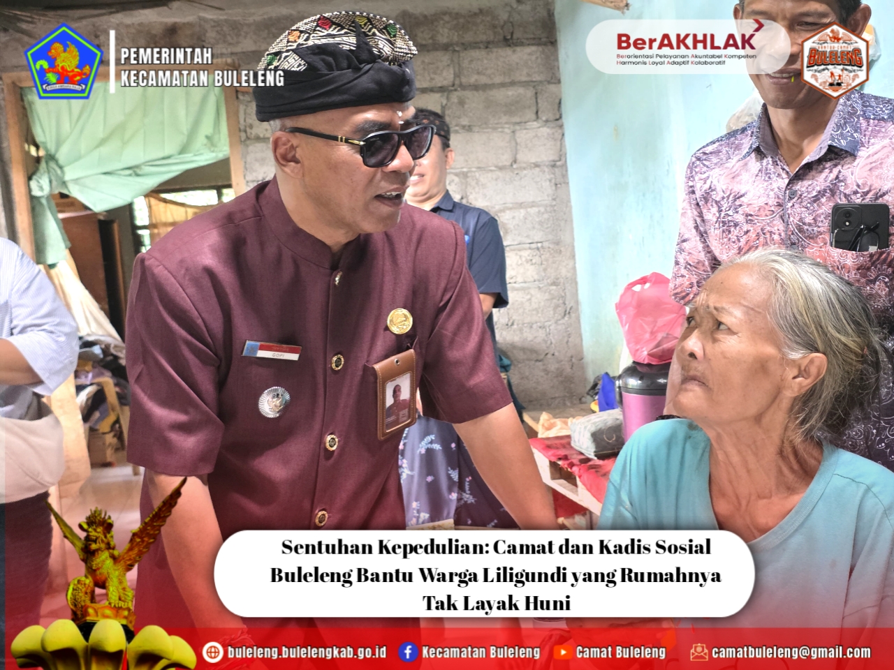 Kunjungan ini merupakan bentuk kepedulian Pemerintah Kabupaten Buleleng terhadap kondisi sosial masyarakat, khususnya warga yang membutuhkan perhatian dan bantuan. Kepala Dinas Sosial bersama Camat Buleleng menyerahkan bantuan berupa paket sembako kepada Ibu Sudanti. Selain itu, tim juga meninjau langsung kondisi rumah yang ditempati, yang diketahui sudah tidak layak huni.