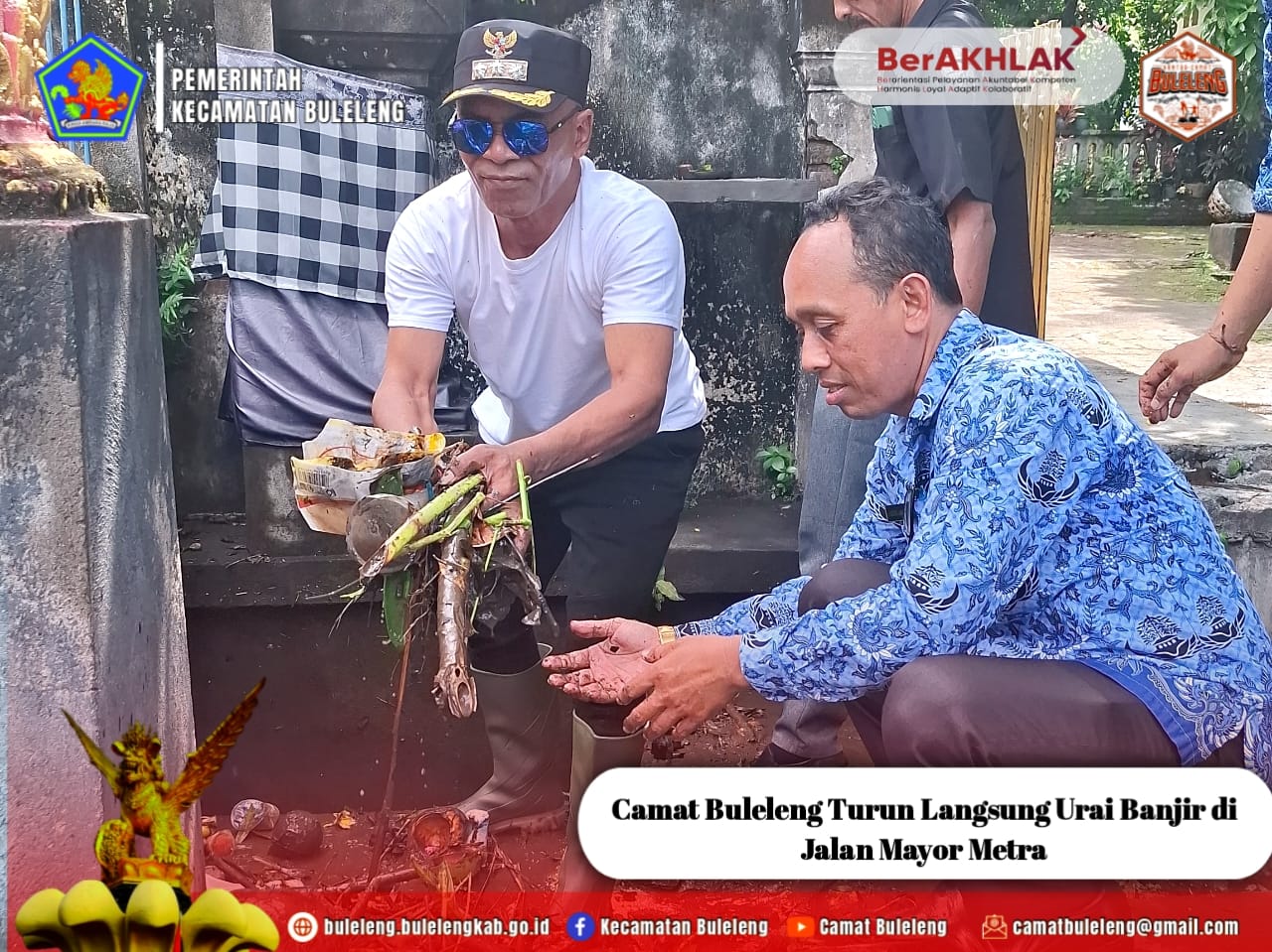Senin, 17 November 2025 pukul 14.00 Wita, Camat Buleleng Putu Gopi Suparnaca, S.Sos bersama Lurah Liligundi Gede Armada serta Plt. Lurah Beratan Gede Susena beserta jajaran turun langsung mengurai banjir yang menggenangi Jalan Raya Mayor Metra, tepat di depan kediaman Pahlawan Mayor Metra.
