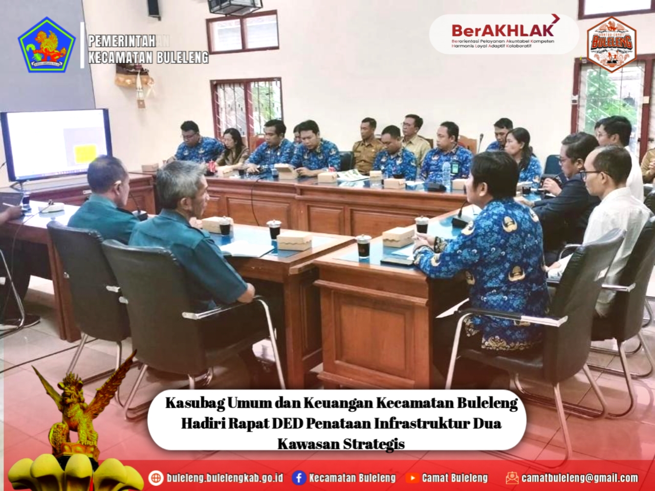 Buleleng, Senin (10/11/2025) – Kasubag Umum dan Keuangan Kecamatan Buleleng, Putu Tegeh Koriadi, S.E., M.Si, menghadiri Rapat Penyusunan Perencanaan Teknis (DED) penataan infrastruktur Kawasan Lovina dan Pusat Perdagangan Kota Singaraja (Jalan Diponegoro). Rapat berlangsung di Kantor Dinas Pekerjaan Umum dan Perumahan Rakyat (PUTR) Kabupaten Buleleng.