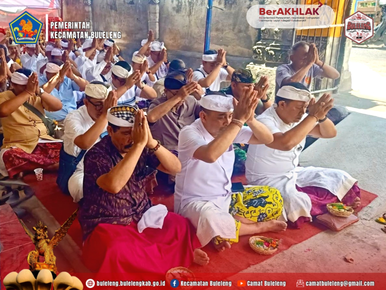 Dalam kesempatan tersebut, Camat Buleleng didampingi oleh Kasubag Umum dan Keuangan Kecamatan Buleleng, Putu Tegeh Koriadi, S.E., M.Si, serta Kepala Seksi Pembangunan Kecamatan Buleleng, Anak Agung Ngurah Wiratma, S.H. Kehadiran jajaran Kecamatan Buleleng ini menjadi bentuk dukungan sekaligus rasa syukur atas terselenggaranya upacara yadnya di lingkungan pemerintahan.