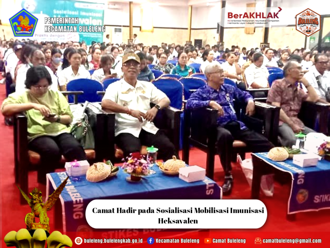 Buleleng, 26 November 2025 – Camat Buleleng, Putu Gopi Suparnaca, S.Sos., menghadiri Acara Sosialisasi Mobilisasi Imunisasi Heksavalen yang diselenggarakan oleh Kementerian Kesehatan bertempat di STIKES Buleleng Convention Center (SBCC). Kegiatan ini bertujuan untuk meningkatkan pemahaman dan kesadaran masyarakat mengenai pentingnya imunisasi Heksavalen sebagai upaya pencegahan penyakit berbahaya pada anak-anak yakni memberikan perlindungan terhadap difteri, pertusis, tetanus, hepatitis B, Haemophilus influenzae tipe B (Hib), dan polio, serta menggantikan jadwal imunisasi dasar pada usia 2, 3, dan 4 bulan.