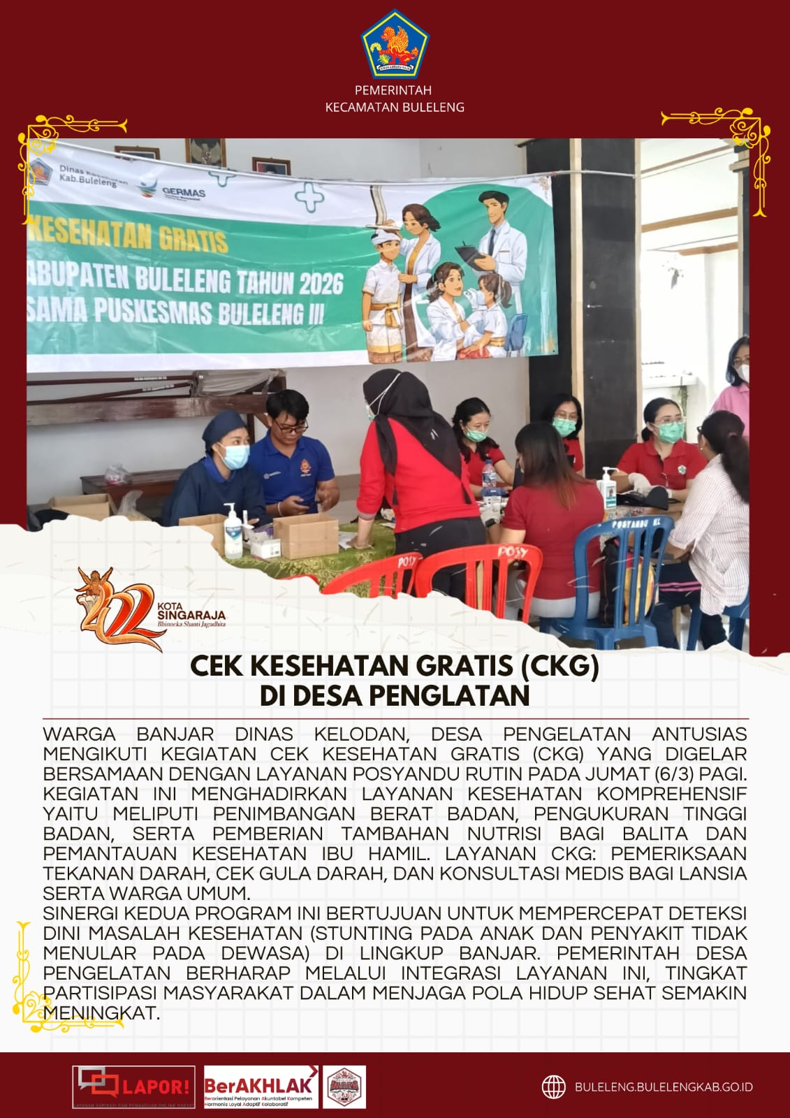 Sinergi kedua program ini bertujuan untuk mempercepat deteksi dini masalah kesehatan (stunting pada anak dan penyakit tidak menular pada dewasa) di lingkup banjar. Pemerintah Desa Pengelatan berharap melalui integrasi layanan ini, tingkat partisipasi masyarakat dalam menjaga pola hidup sehat semakin meningkat.