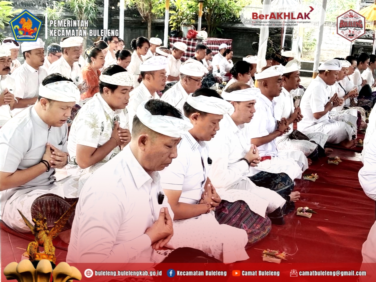 Hadir dalam kesempatan tersebut Bupati Buleleng, Wakil Bupati Buleleng beserta Ibu, Sekretaris Daerah Kabupaten Buleleng, serta seluruh Kepala Organisasi Perangkat Daerah (OPD) di lingkungan Pemerintah Kabupaten Buleleng.