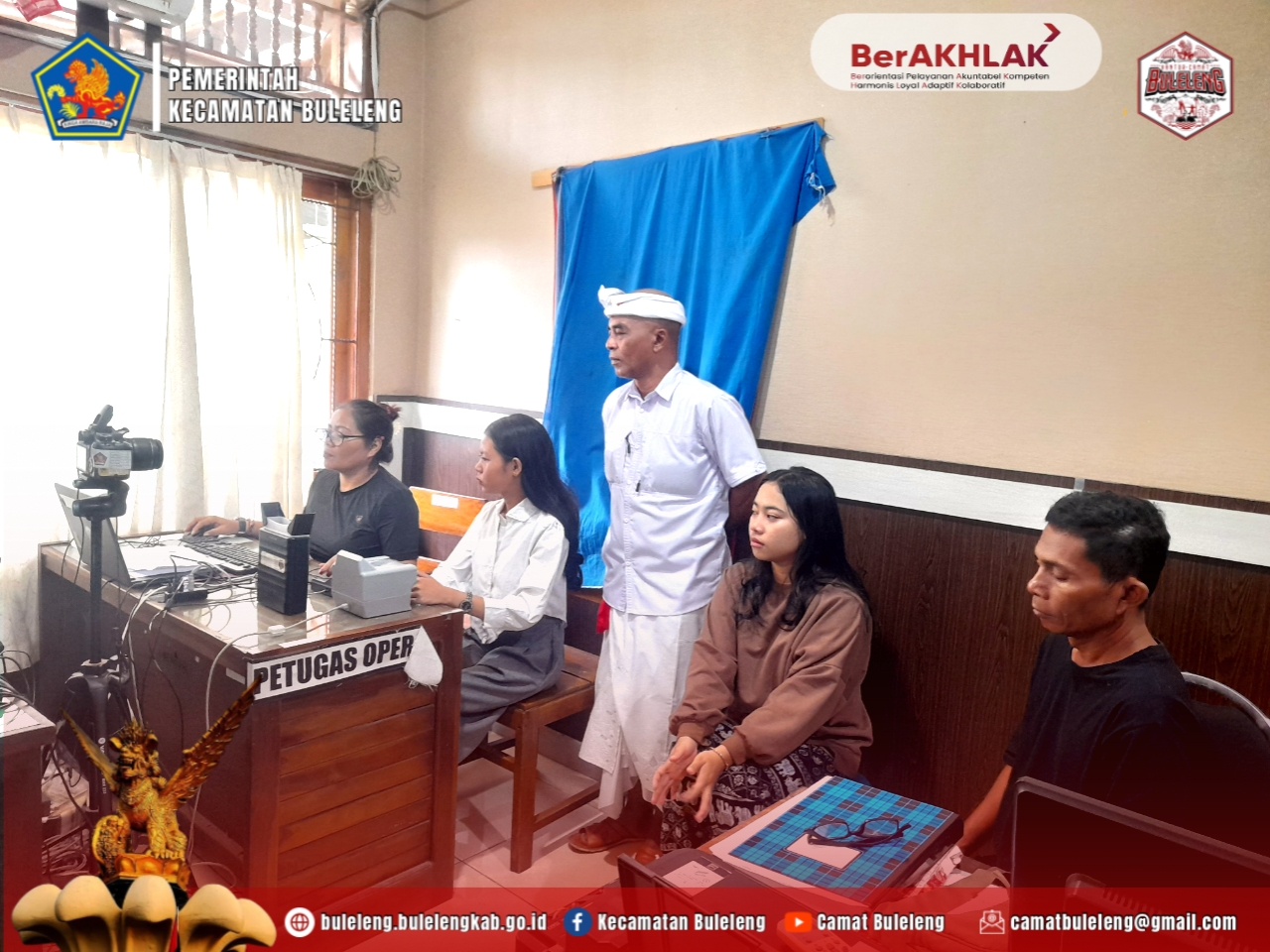 Camat Buleleng Putu Gopi Suparnaca, S.Sos. didampingi Kepala Seksi Pemerintahan Gede Susena, S.E. pada hari pertama turun langsung memantau jalannya proses perekaman. Kegiatan ini menyasar warga Kecamatan Buleleng yang hingga kini belum melakukan perekaman KTP-el, termasuk penduduk pemula yang baru berusia 17 tahun.