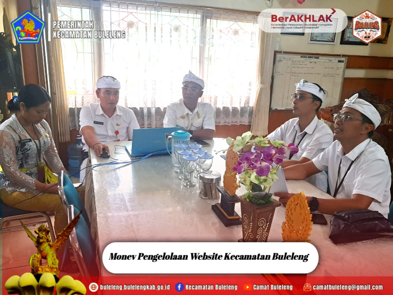 Pada kesempatan tersebut, Camat melakukan konfirmasi terkait penilain website yang ada di Kantor Camat Buleleng untuk segera ditindaklanjuti oleh petugas website Kecamatan Buleleng jika ada hal-hal yang perlu dilengkapi.