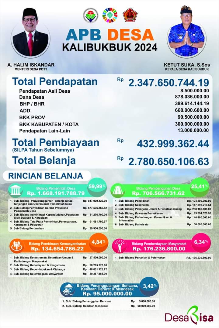 APBDes (Anggaran Pendapatan dan Belanja Desa) Desa Kalibukbuk Tahun 2024.